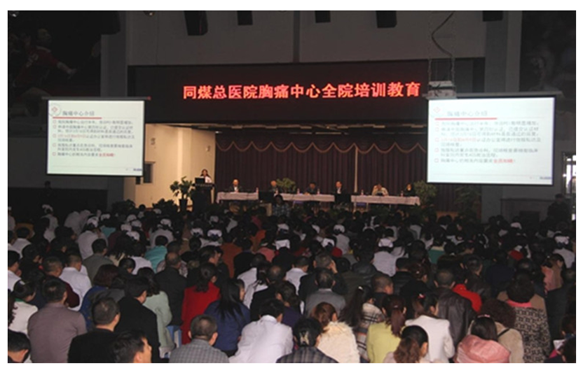 按照中国胸痛中心建设要求,同煤总医院成立了胸痛中心委员会,定期举行联合例会及质量分析、典型病例分析会,会议由胸痛中心主任委员或医疗总监主持,心内科、急诊科、120及网络医院及村医参加,解决胸痛中心建设中存在的问题。