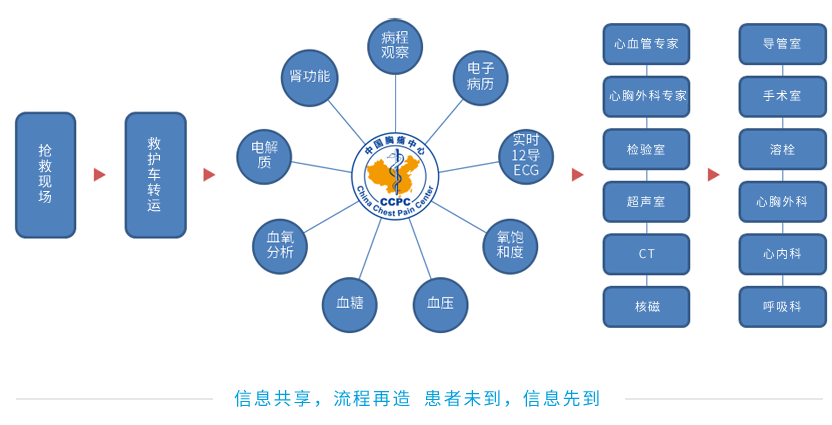 医联体模式中的「4个中心」已经建立急救「绿色通道」,患者呼叫120后,患者的病历就通过急救电子病历系统传输到医院,医院为患者提前做好术前准备,患者到院后就可直接进入手术室抢救,做到患者未到、信息先到,为医院救治患者赢得时间,大大提高抢救成功率。