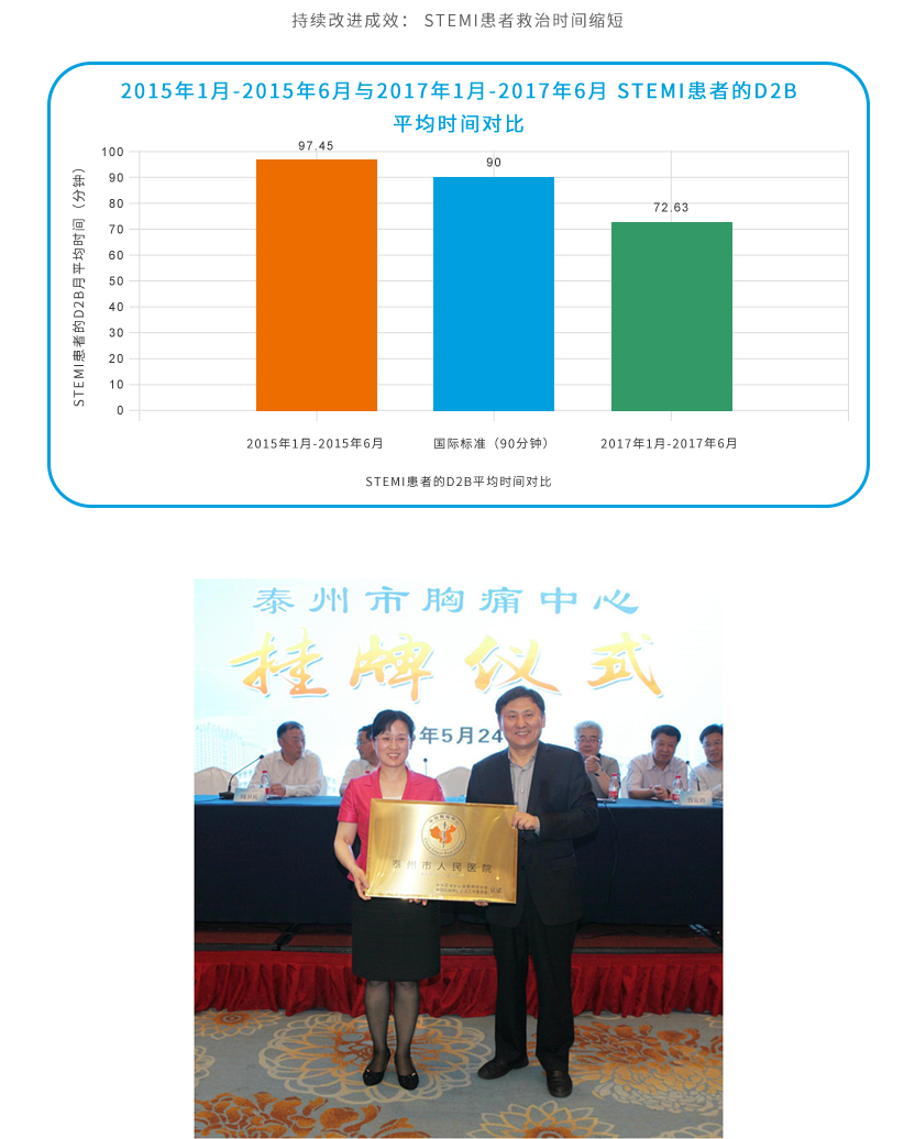充分利用资源,不断强化中心辐射能力和地区影响力。泰州市市级院前急救总站坐落泰州市人民医院,距离胸痛中心仅20米,医院副院长担任法人代表,在行政、技术层面为全市范围内胸痛患者的转运提供了双重保障。